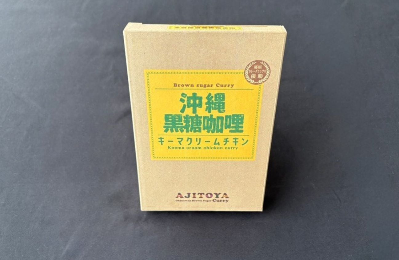 沖縄黒糖咖哩(キーマクリームチキン)は、那覇カレーグランプリ2019優勝店「あじとや」が手がけた本格レトルトカレー。スパイス料理の本場スリランカのレシピに、沖縄・多良間島産黒糖と生クリームを加え、コクとまろやかさを両立した新しい味を実現しました。